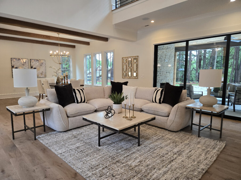 Great Room 1 New construction home staging in Concord NC Huntersville NC