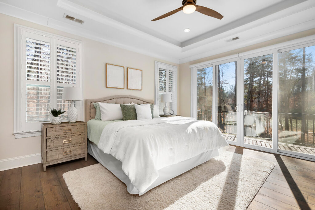 Master Bedroom New construction home staging in Concord NC Huntersville NC